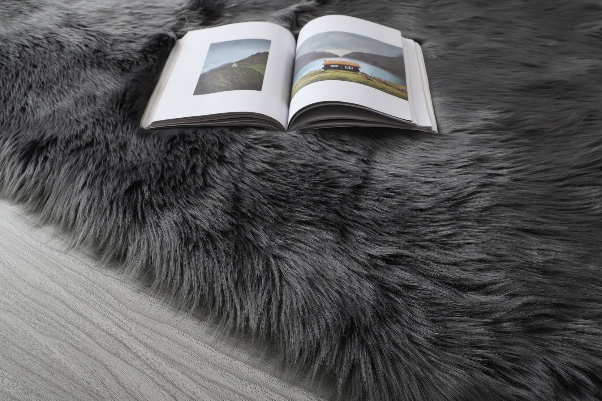 Bring a touch of the natural, silken beauty to your contemporary living space with this luxury sheepskin faux fur rectangular grey area rug. The soft pile area rug features a densely woven, plush front that replicates the look and feel of sheepskin fur for exceptional underfoot comfort.