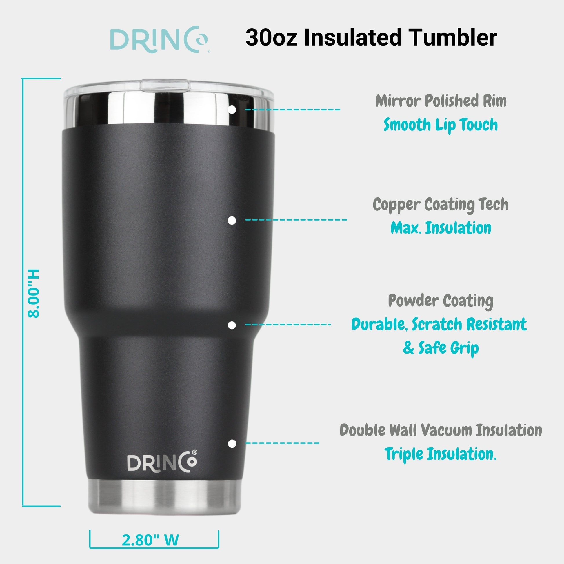 DRINCO® 30oz Insulated Tumbler Spill Proof Lid w/2 Straws (Black)