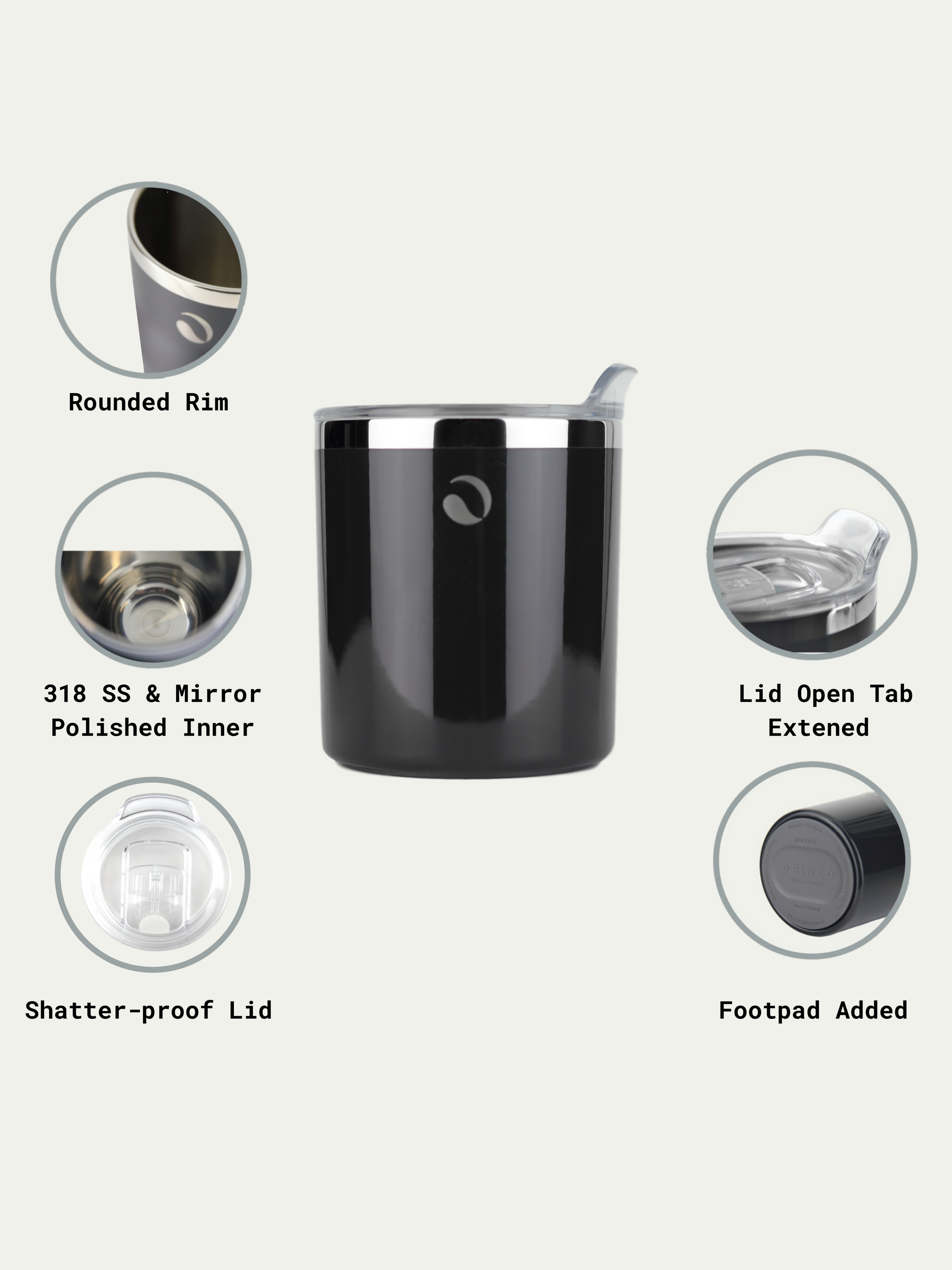 DRINCO- 10oz Vacuum Insulated Tumbler Whiskey Glass GULT (Jet Black)