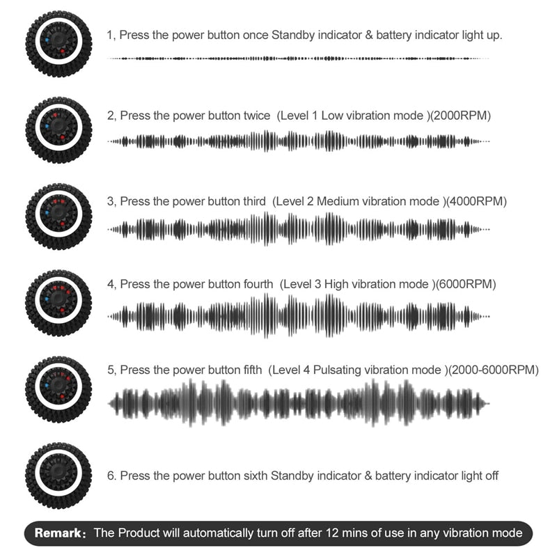 - 🌟 **4 Level Vibration Modes:** Choose from Low, Medium, High, and Pulsating for customized muscle therapy.