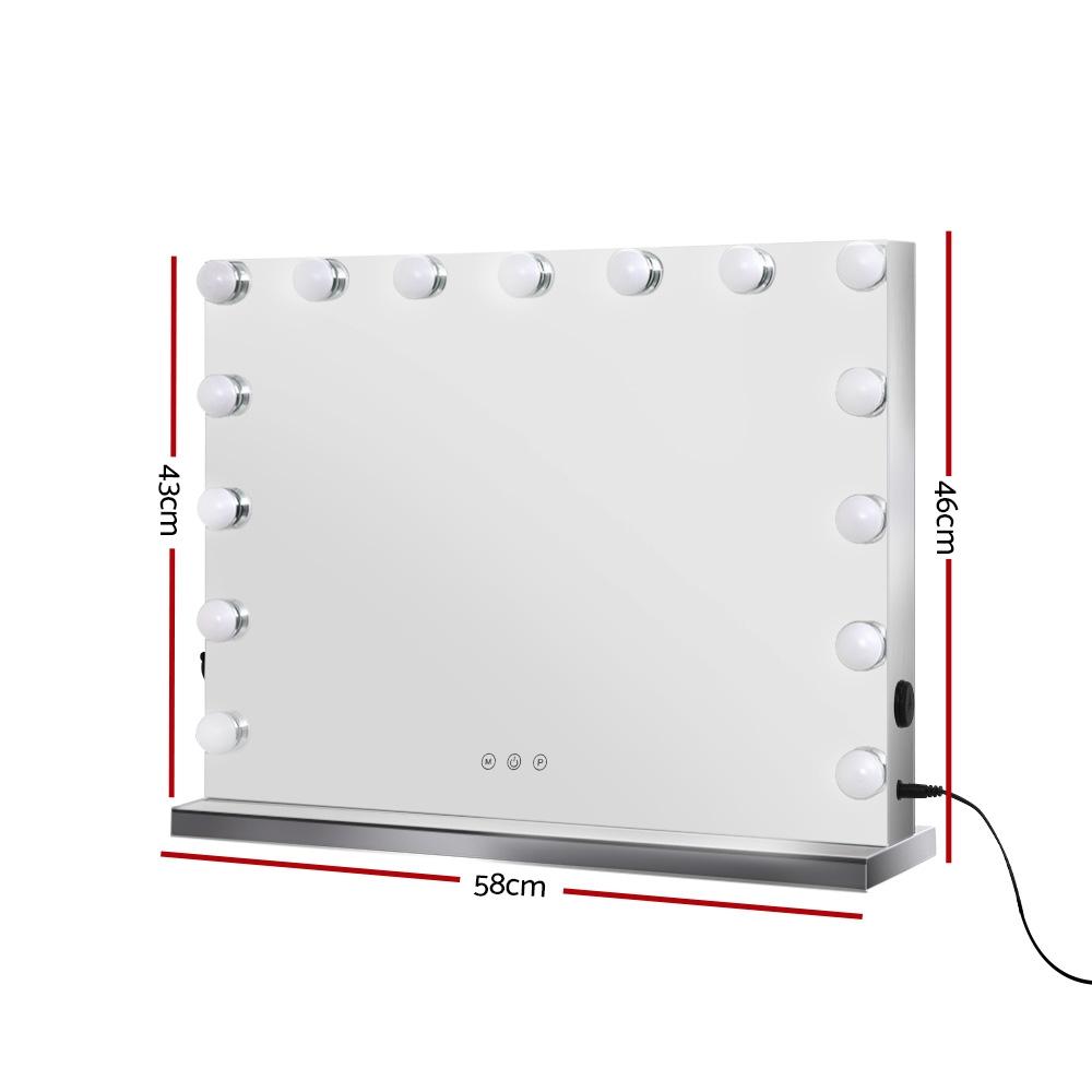 Get the star treatment with our gorgeous Embellir Make-up Mirror. The 15 bright LED bulbs placed around the mirror really light up your countenance during your daily makeup regimen. The mirror is frameless for a completely smooth and sleek look, with the LED bulbs attached directly to the mirror surface. The mirror sits on an equally smooth powder-coated MDF base for good stability and durability. Even more wonderful is that the LED light can be easily adjusted for brightness and colour temperature (choice of cool white, daylight and warm yellow) with the touch switch and included smart remote control. Turn your bedroom or bathroom into a celebrity set overnight with our make-up mirror. And enjoy beauty in all its illuminated brilliance.