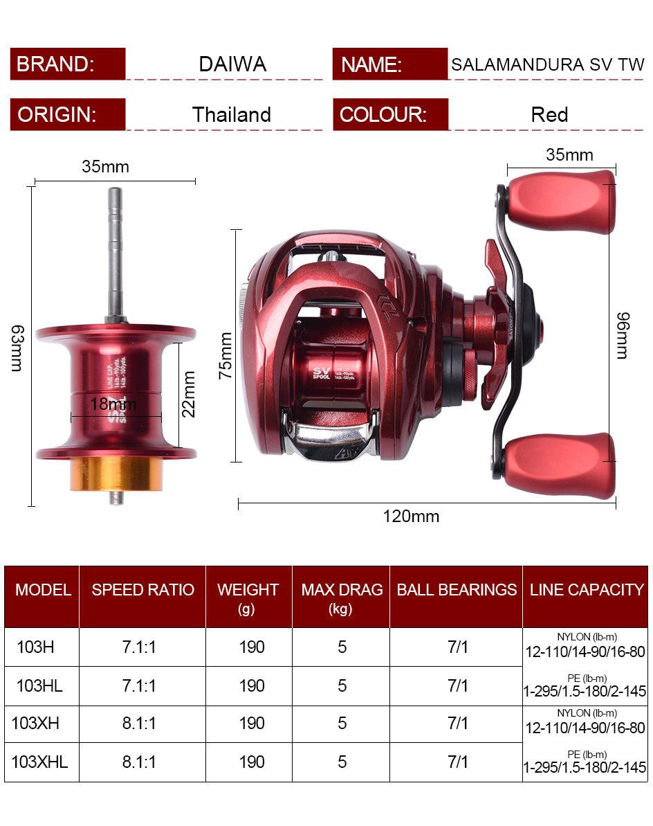 Fishing Reels 103H/103HL 7+1BB Gear Ratio 7.1:1 Max Drag 5kg Reel Fishing