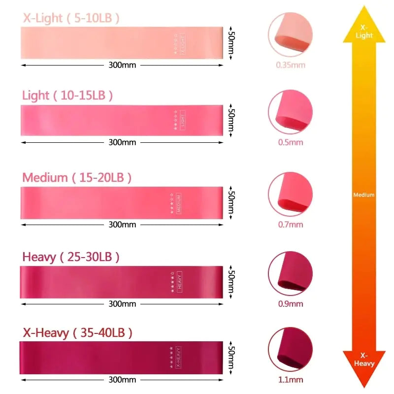 **Perfect Size:** With a length of 60cm and a width of 5cm, our bands offer the ideal dimensions for a comfortable and effective workout. Plus, the thickness ranges from 0.35mm to 1.1mm, providing varying levels of resistance to suit your needs.