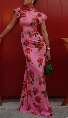 Exquisite Floral Print: Adorned with a delicate and sophisticated floral pattern, this dress exudes charm and grace, perfect for a refined look at parties or evening gatherings.