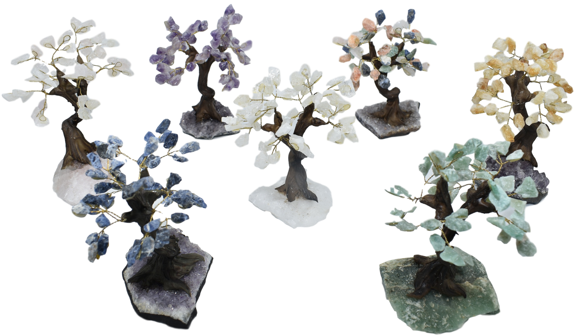 Available in small or large sizes, these gemstone trees are the perfect way to bring nature’s beauty into your home. Your Bonsai Tree’s “leaves” are carefully placed gemstone pieces that offer a bright and healing aura. Trees also sit atop a base of your gemstone of choice. Gemstone Bonsai Trees are available in rose, green, or white quartz, amethyst, citrine, sodalite, or mixed stone.
