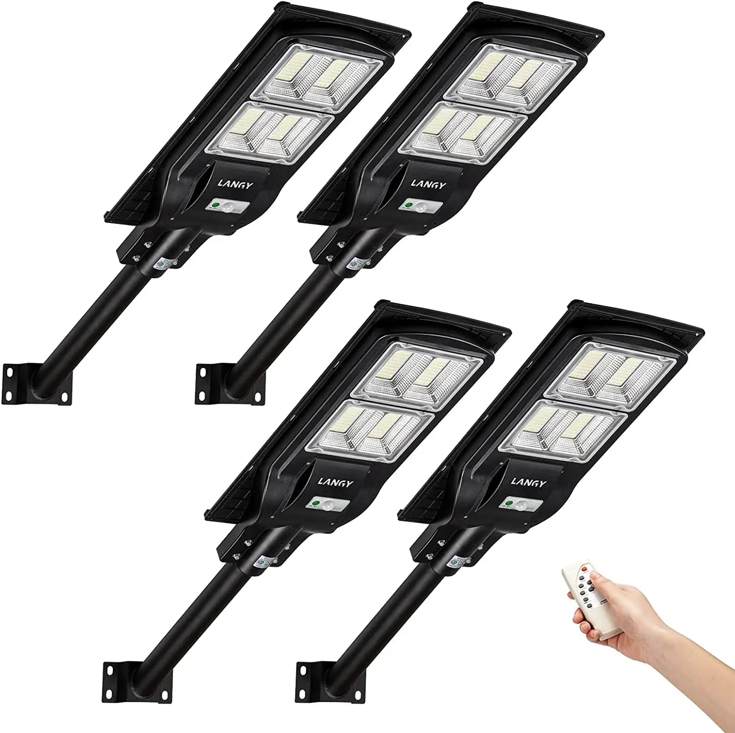 Solar Street Light 12000 Lumens, LED Street Lamp with Light Control&PIR Motion Sensor, Dusk to Dawn LED Security Light Solar Flood Light for Square, Yard, Basketball Court -LANGY -240 durable super-bright LED's and has a 12-month warranty