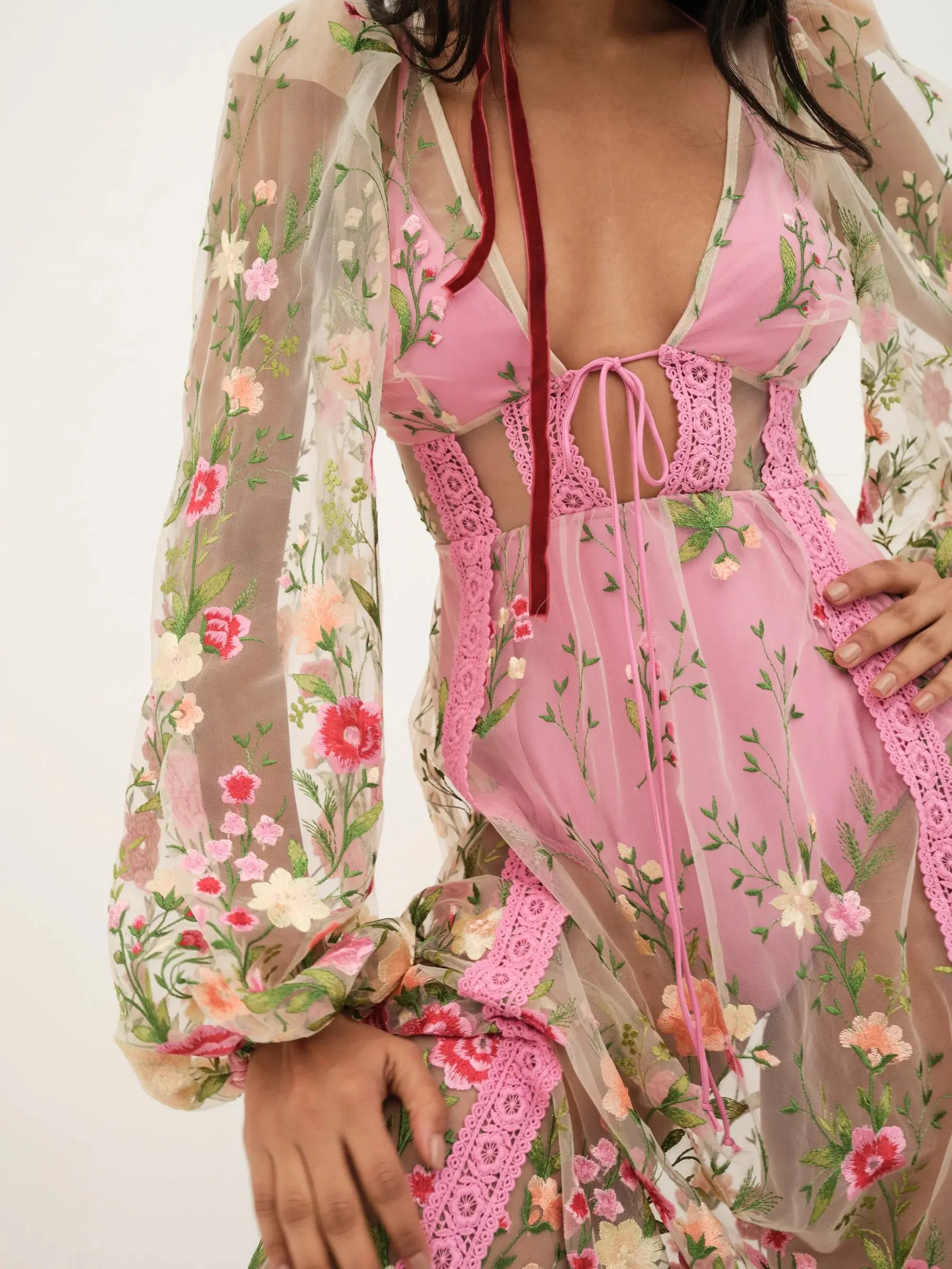 Embrace Summer Glamour with Our Long Sleeve V-Neck Beach Dress