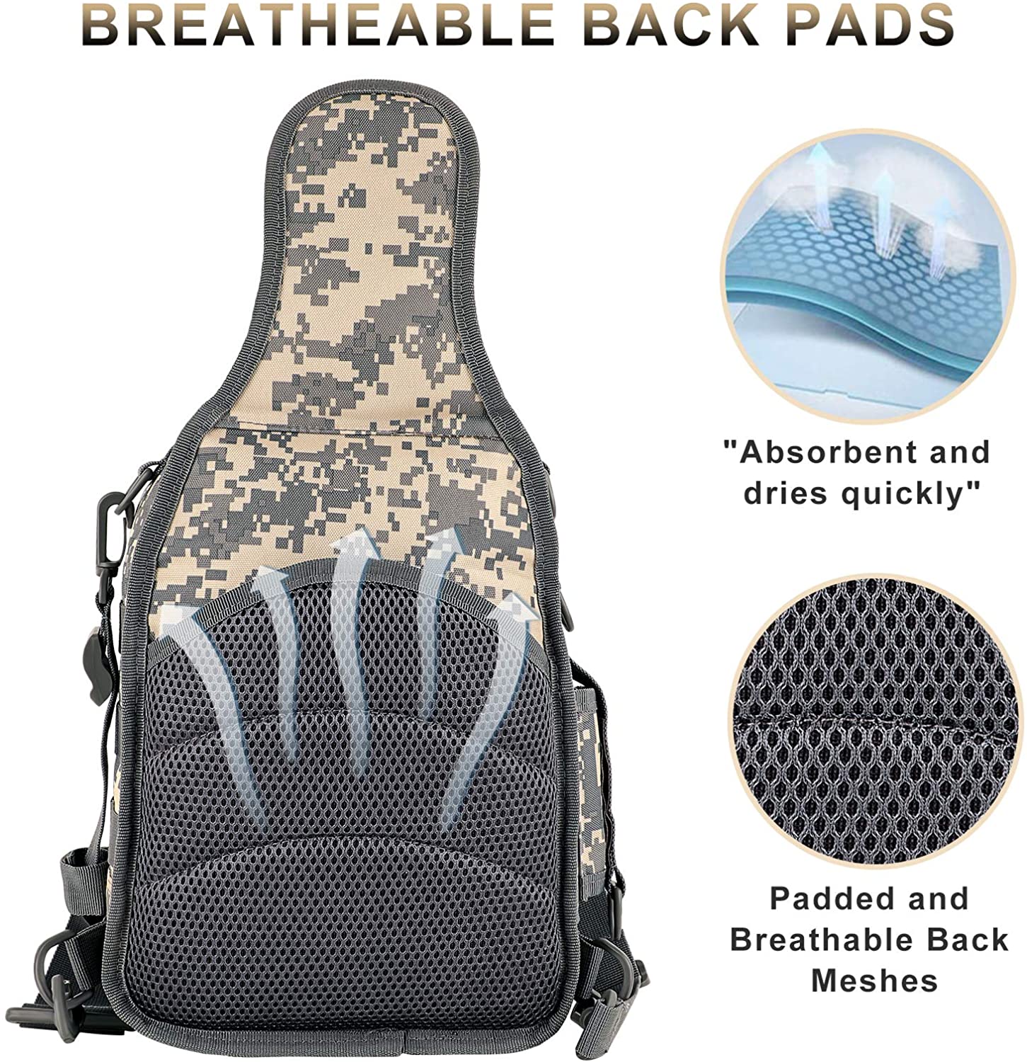 - LUXHMOX Fishing-Backpack for Outdoor Gear Storage Tackle-Bag 5.25x12x9 Waterproof Sling Bag