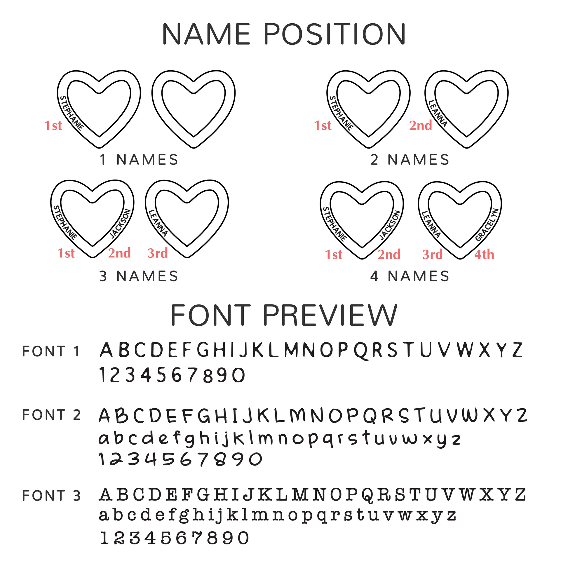 The most special and most favorite gifts for mothers and grandmothers alike. Select 2-3 hearts, each engraved with names of her children or grandchildren. This 3-heart necklace can hold up to 6 children's names.