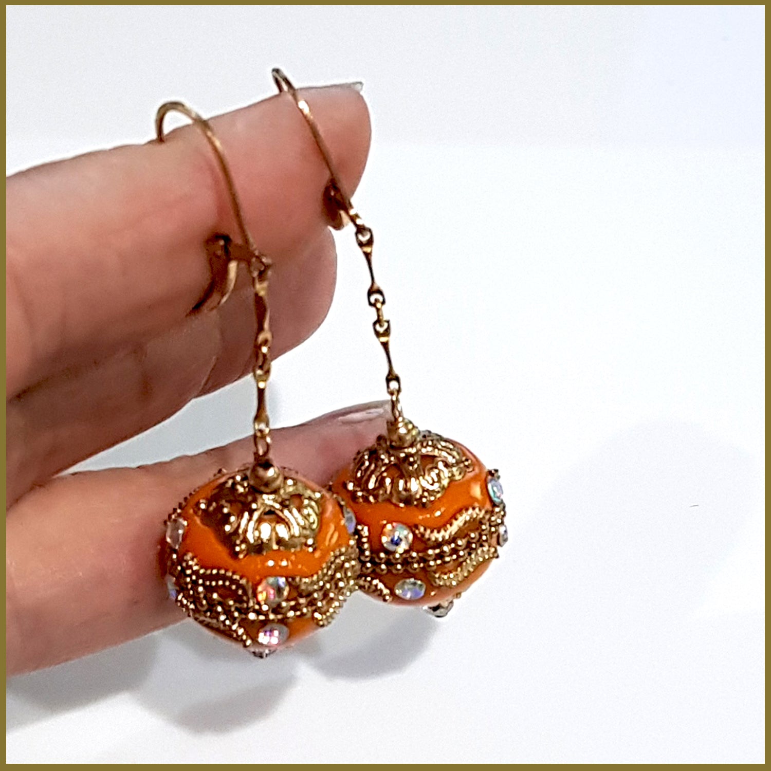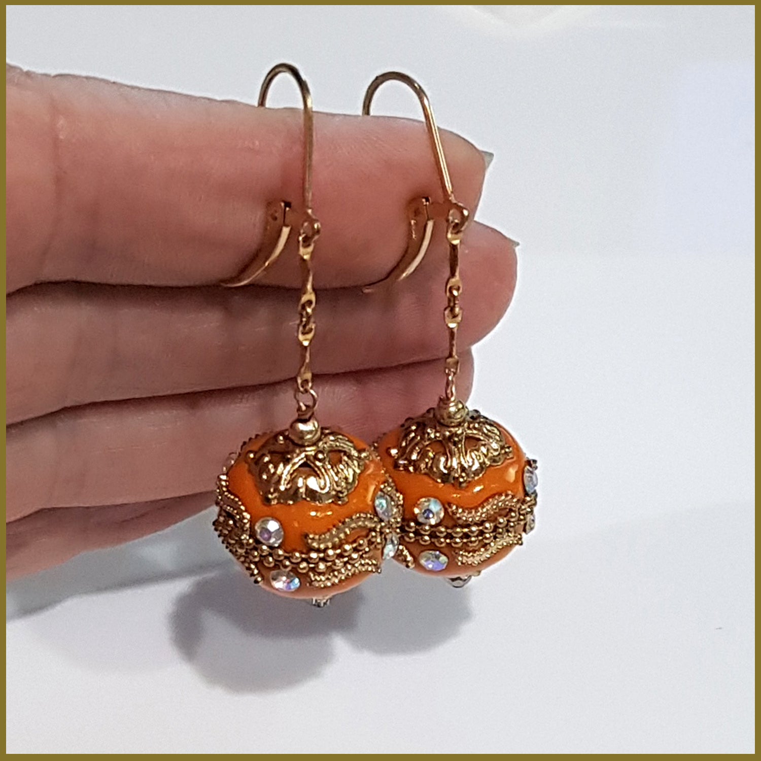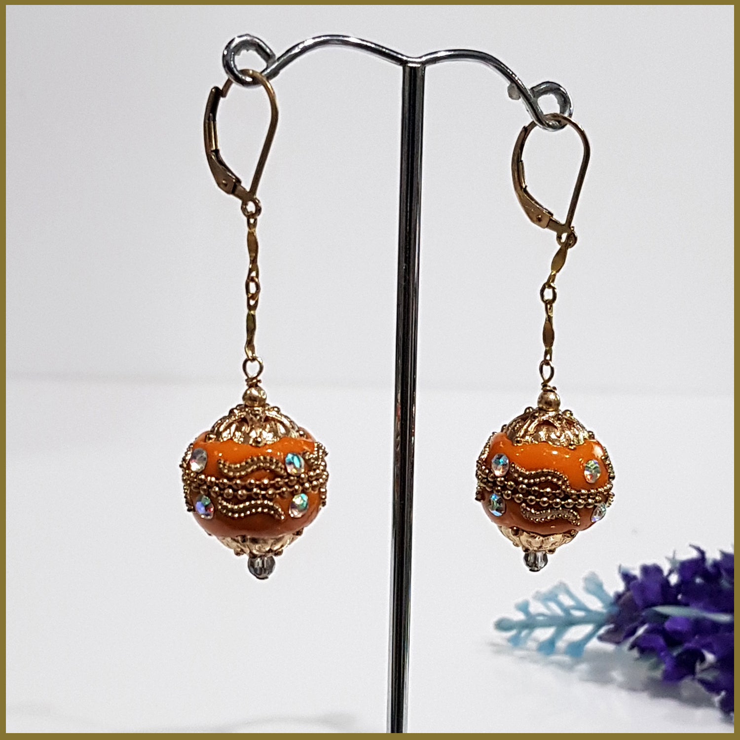 Handmade long dangle earrings. Feel the natural glow on your face with these statement pair of earrings.