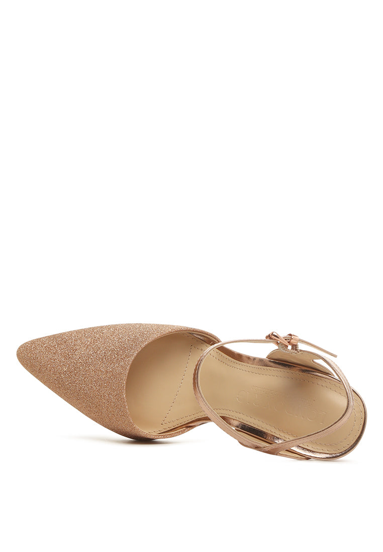 The glitter stiletto sandals have a subtle beauty of glamour with the glitter vamp. The cushion insole is easy of the feet while the slingback and pin buckle fastening secure feet well. The sparkle shoes are elegant and stylish, perfect for wedding season as wedding heels, bridesmaid shoes, after party shoes, wedding guest shoes, etc.