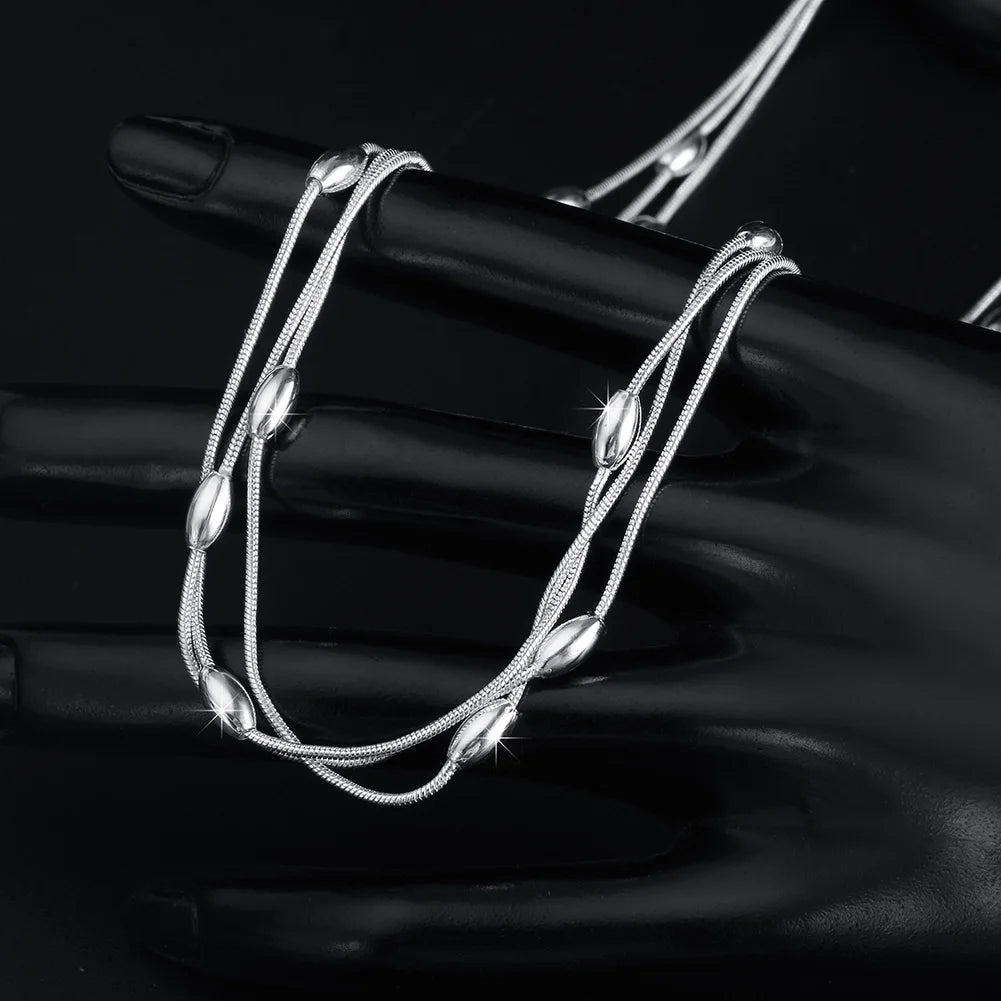 Elevate your look with the Silver Beads Necklace, a classic and sophisticated piece perfect for any party or special occasion. Crafted from high-quality 925 sterling silver, this necklace features a sleek snake chain design that exudes elegance. Weighing 11 grams and certified by a third-party appraisal, it ensures both style and authenticity. The Silver Beads Necklace offers a timeless appeal, making it a versatile addition to your jewelry collection.