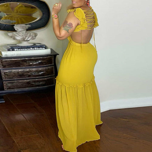Sleeveless Back Lace Up Maxi Dress