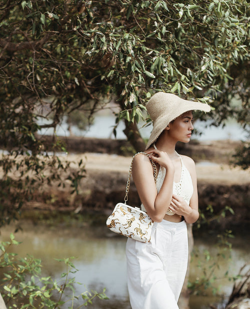 This clutch is our exclusive collection to shine the light to Indonesia's Sumatran tiger, one of world's critically endangered animal. According to WWF, there are only fewer than 400 Sumatran tigers left and if deforestation & poaching action continues, Sumatran tiger could be the first large predator to go extinct in the 21st century.