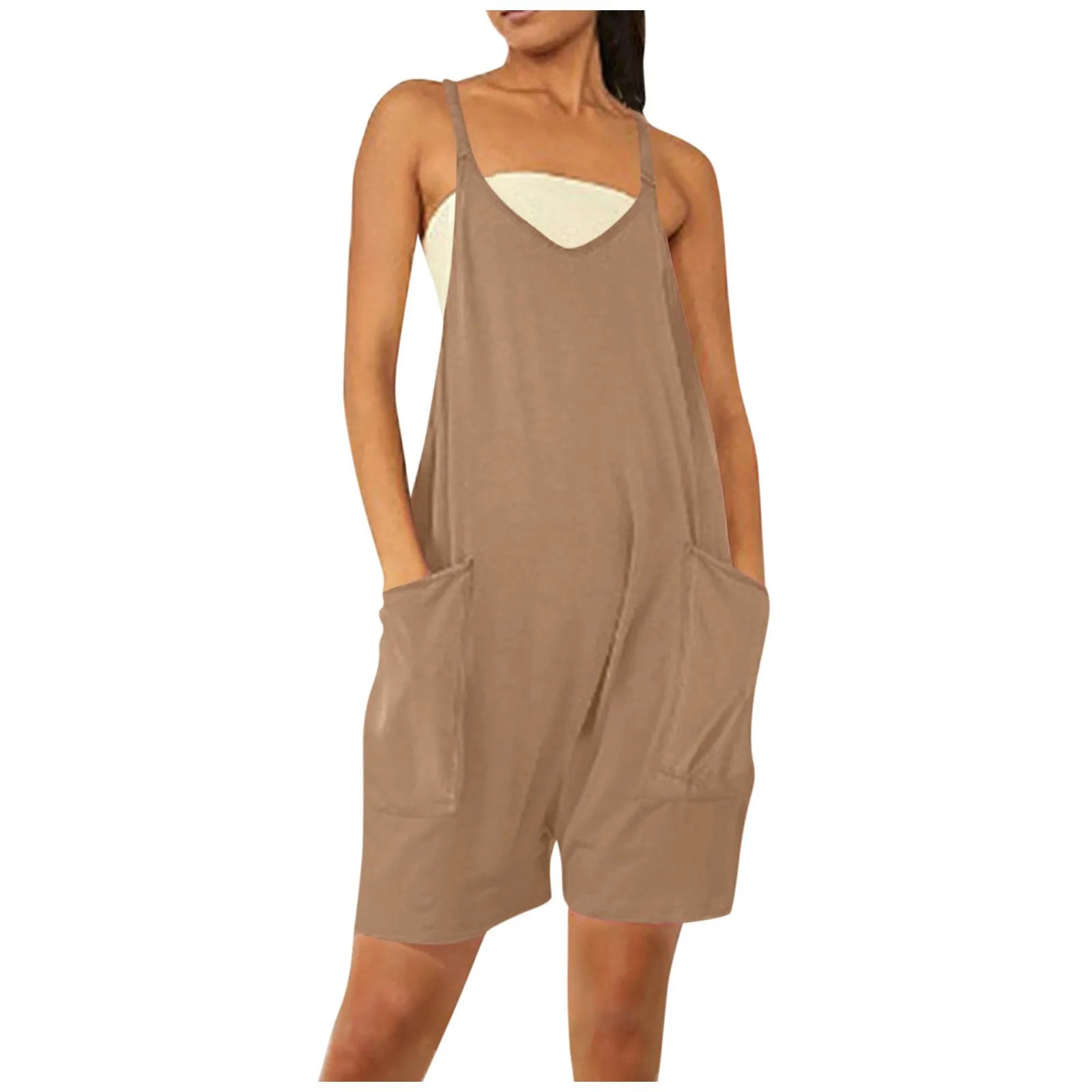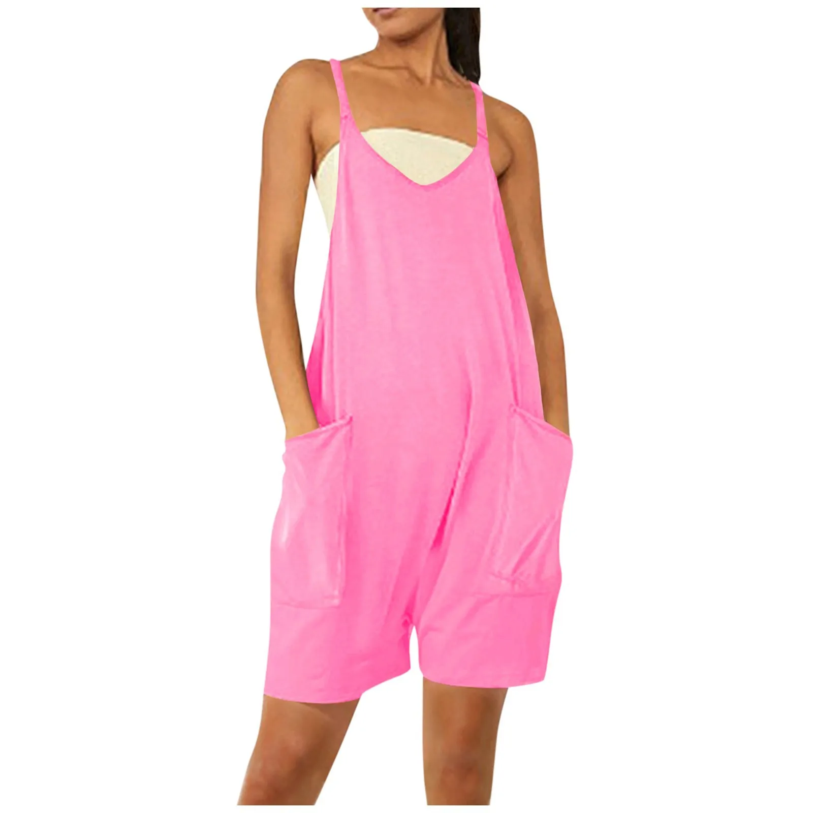 Summer Slim Jumpsuit Casual Sleeveless Adjustable Shoulder Strap Loose Jumpsuit Women'S Shorts Solid Color Pants For Women