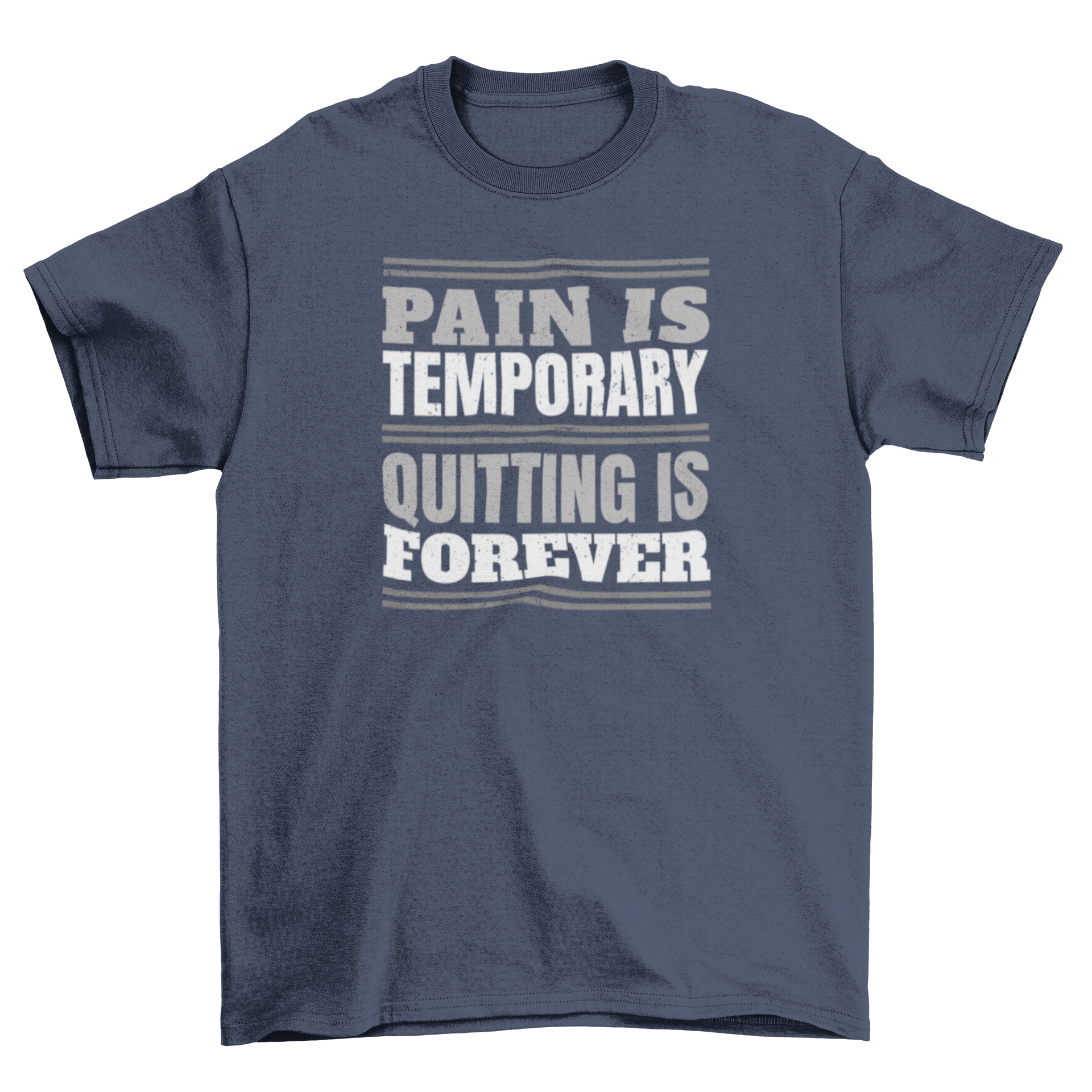 Awesome t-shirt design featuring the quote "Pain is temporary, quitting is forever".