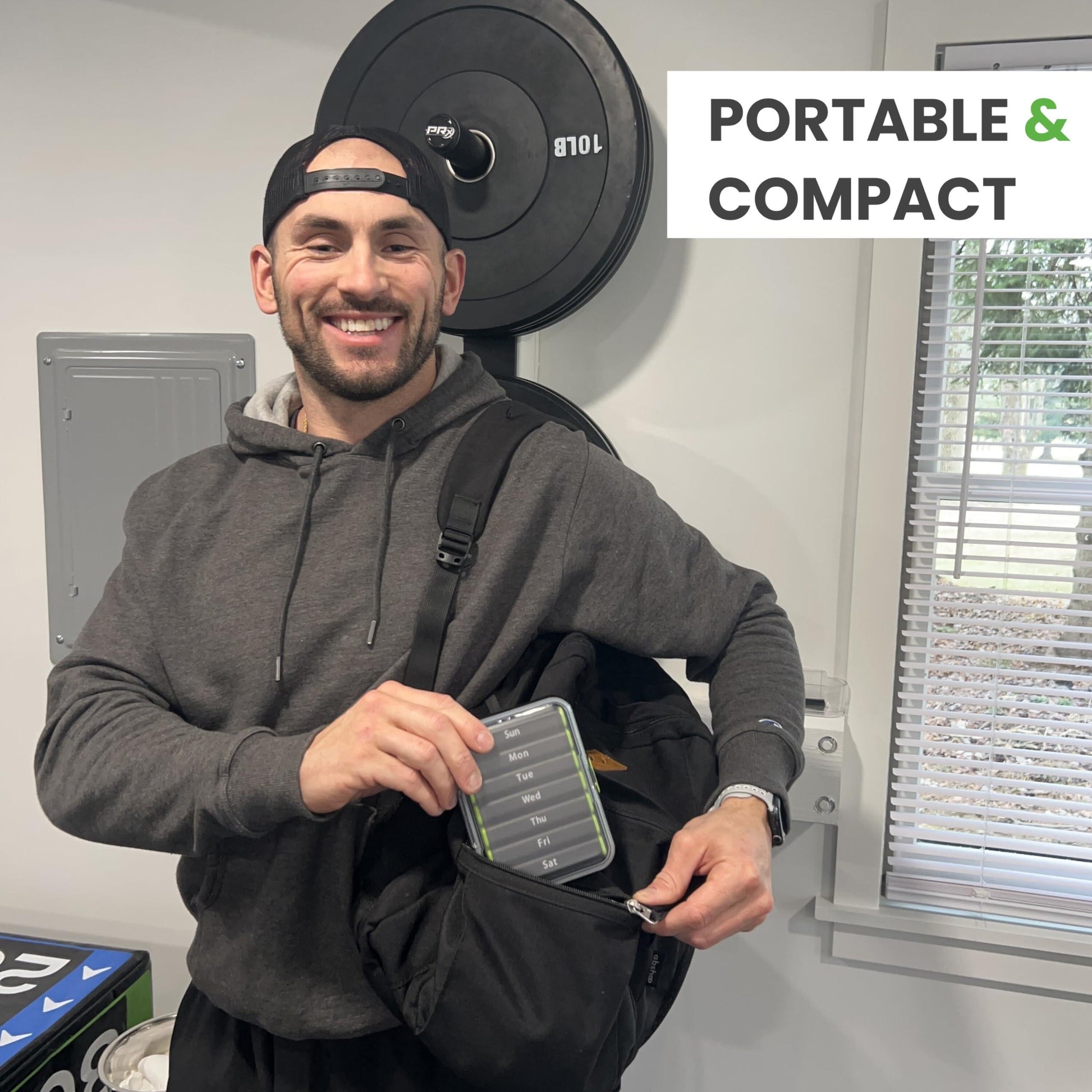 DETACHABLE - You can take each daily vitamin container that you need for the day and drop it in your purse or pocket. This travel pill case is ideal for vacations. Its dependable lock ensures the compartments stay secure, preventing any spills in your bag AM/PM - The compartments of the medicine pill box are divided into morning and night sections. The lids feature convenient 3D labeling, A and B, ensuring that you never mix up your medication Airtight - The silicone covers of the vitamin dispenser close deeply and securely, preventing damage to supplement and keeping your med dry. You can confidently take it to the sea, camping, and more KEEP TRACK OF YOUR PILLS - Forget about chaos and disorder! Take control of your meds storage with pill holder 7 day. Each small compartment is labeled with the days of the week for easy monitoring SECURITY & HEALTHY - Twice a day weekly pill organizer has double lock. It is made of BPA Free material, keep your pills safe and clean, protecting your health