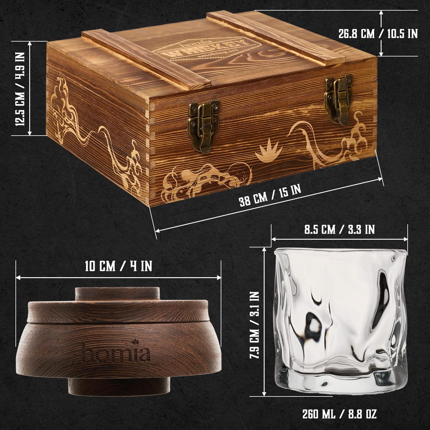PREMIUM QUALITY & COMFORTABLE SIZE: Our gorgeous wooden box will add an elegant look to any bar display or a man cave. Old Fashioned glasses fit the perfect amount of your favorite drink: 8.6 , which is perfect to combine. Whiskey stones are made of finest natural granite, effective and fast to use, safe and assured.