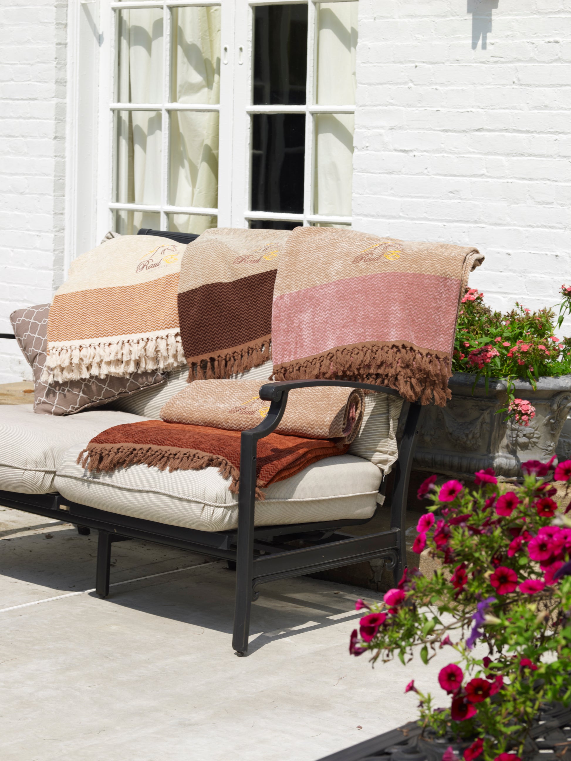 * It features a luxurious chenille herringbone design and a fringed edge.