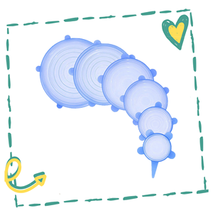 The silicone stretch cover lids will reduce your plastic waste and help you save money, since you will no longer need to buy cellophane to cover your leftover food fresh. Plus, the bowl lid does a much better job at keeping your food fresh!